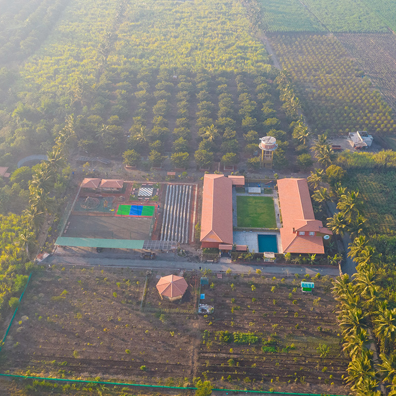 Spread across 15 acres of lush land, Devrai Retreat offers a rare rural farm experience without compromising on modern luxuries. Mornings begin with the scent of fresh earth and birdsong. Evenings glow under vast open skies, where sunsets melt into serenity.